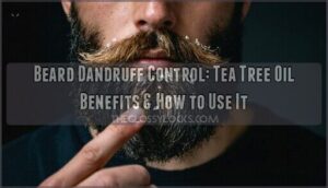 Tea tree oil, with its antifungal properties, helps reduce fungal growth, soothe irritation, and control yeast overgrowth, offering relief from beard dandruff and its symptoms, by helping to reduce fungal growth and alleviate skin irritation.