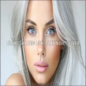 - Ash blonde with blue undertones – Cool silver-blue tones that make your eyes absolutely pop
