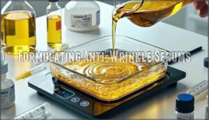 Creating effective antiaging serum formulations requires understanding proper jojoba oil concentrations and serum ingredients. You’ll want to optimize between 3-10% jojoba oil for maximum wrinkle-fighting benefits without compromising absorption.