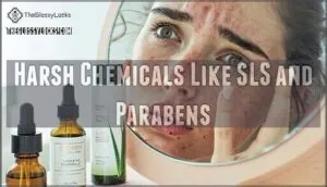 You’ll want to steer clear of common culprits like benzoyl peroxide, alcohol, and sulfates, plus watch out for seemingly harmless natural ingredients that can still cause irritation.